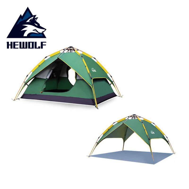 ORIGINAL Hewolf 3-4 person Camping Tent Automatic Waterproof Double Layer Tents Ultralight Outdoor Hiking Pi