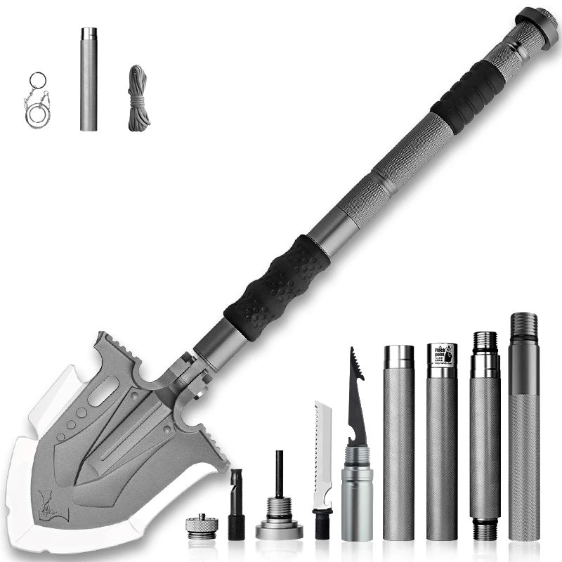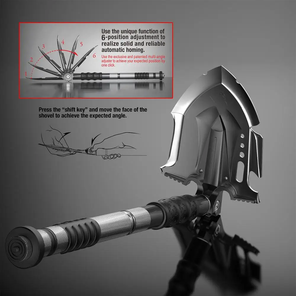 Military Portable Folding Shovel and Pickax with Tactical Multitool for Camping Hiking Backpacking