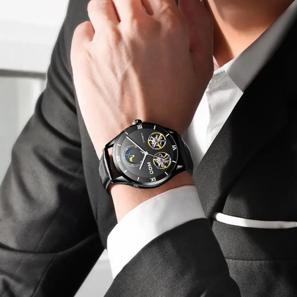 DOM Men Watches Fashion Design Skeleton Sport Mechanical Watch Luminous Hands Transparent Leather B