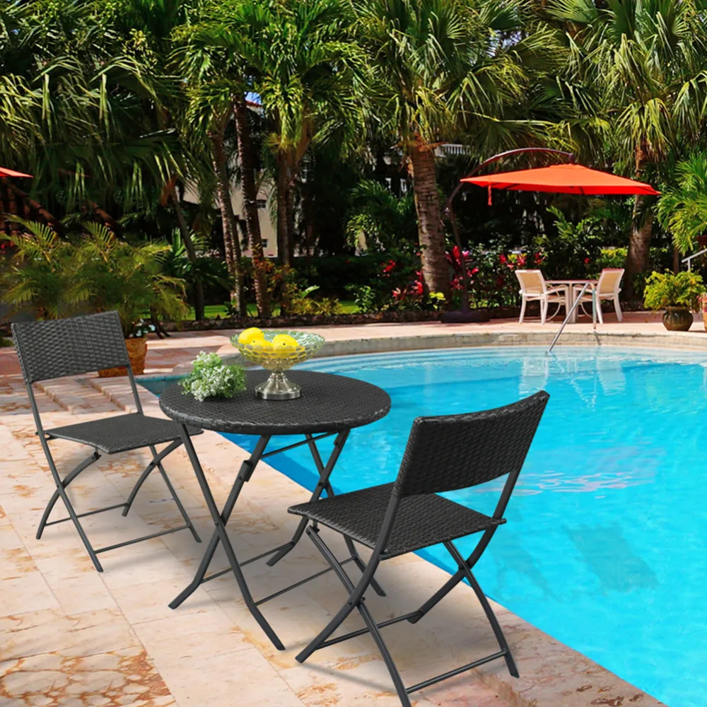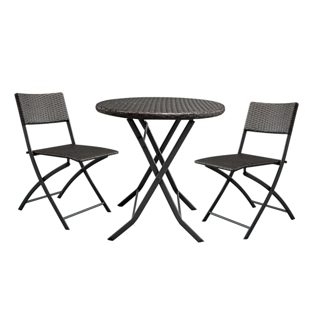 Hot Sale 3pcs/set Foldable Multiful Portable Chair Gradient Garden Rattan Coffee Table ChairFor Outdoor Acti