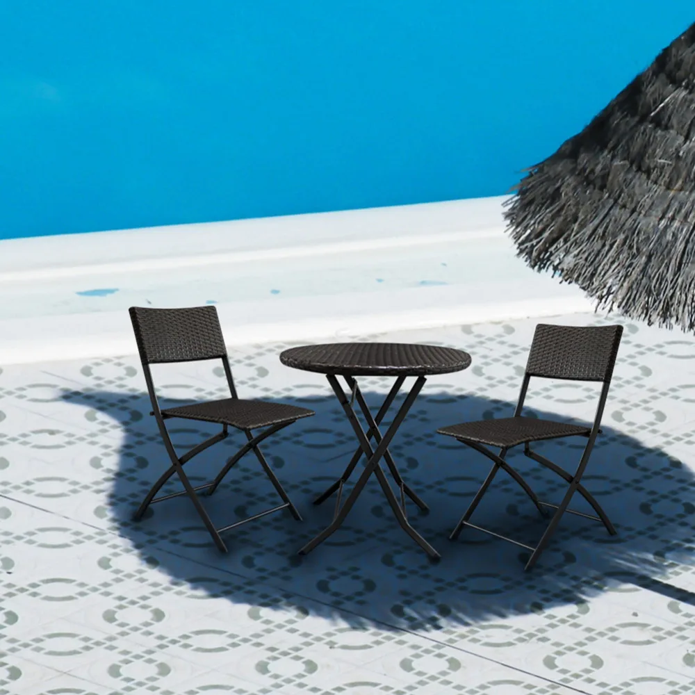 3pcs/set Foldable Multiful Portable Chair Gradient Garden Rattan Coffee Table ChairFor Outdoor Acti