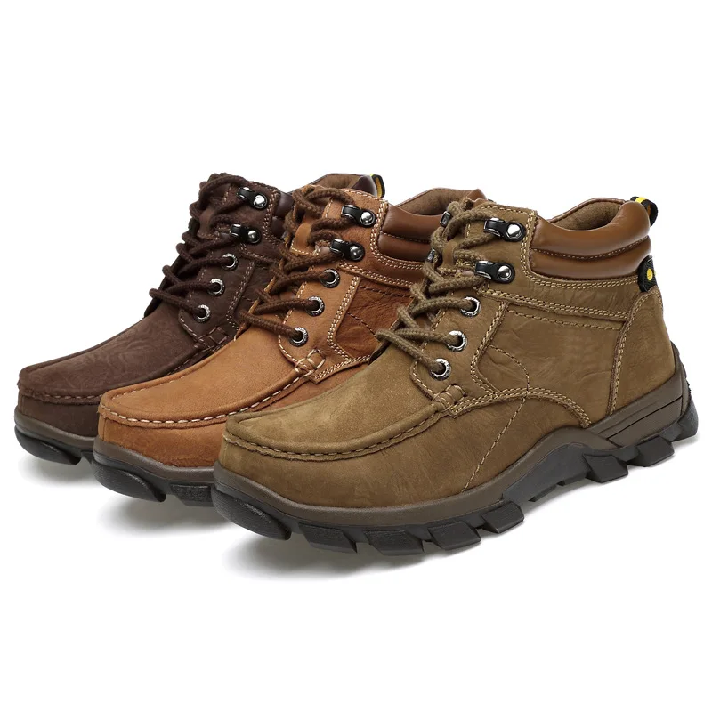 Men Genuine Leather Winter Warm Hiking Shoes High top Mountain Walking Outdoor Sport Anti Skid Trav