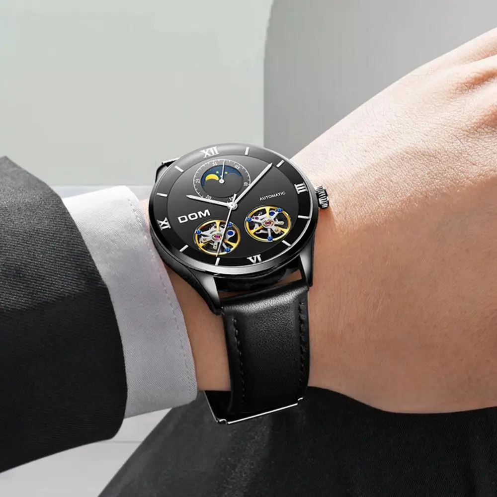 DOM Men Watches Fashion Design Skeleton Sport Mechanical Watch Luminous Hands Transparent Leather B