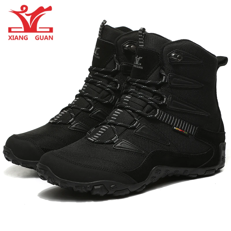 BEST QUALITY XIANG GUAN Men Hiking Boots Cow Leather Women Trekking Shoes Black Waterproof Sports Climbing Outdo